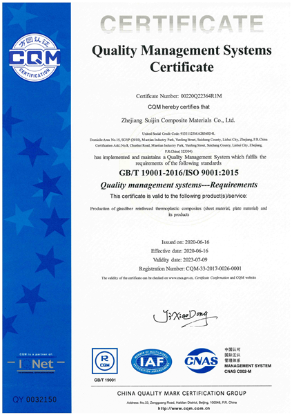 - Zhejiang Suijin Composite Material Co., LTD., located in Maotian Industrial Zone, Yunfeng Town, Suichang County, Lishui City, Zhejiang Province,Covering an area of more than 20,000 square meters, construction area of more than 11,000 square meters, the total investment of more than 70 million yuan, is the production of continuous fiber reinforced thermoplastic composites of high-tech enterprises.